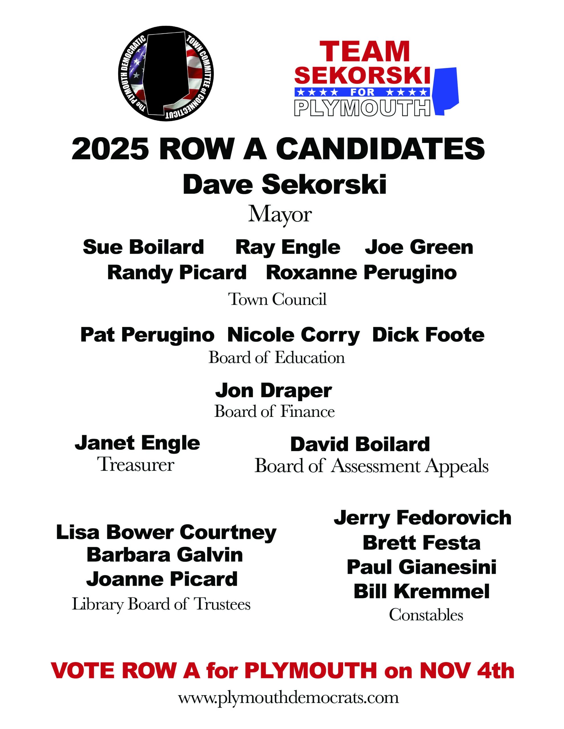 PLEASE CONSIDER VOTING DAVE SEKORSKI FOR MAYOR and the ROW A DEMOCRATIC TEAM!!!